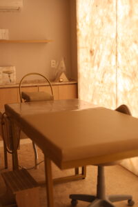 Os ambientes foram concebidos para funcionar como um refúgio urbano dedicado ao bem-estar, proporcionando ao paciente uma sensação de pausa e cuidado desde o primeiro contato com o espaço. “Queríamos criar um ambiente onde as pessoas realmente se sintam acolhidas e cuidadas. A experiência começa desde o momento em que o paciente entra na clínica”, afirma Isabela.