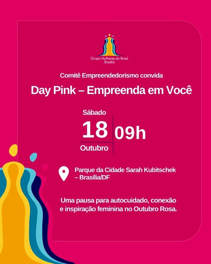 O Parque da Cidade Sarah Kubitschek será palco, no sábado (18), do Day Pink – Empreenda em Você, uma manhã dedicada à conexão, ao autocuidado e à inspiração feminina. A iniciativa é do Comitê de Empreendedorismo do Grupo Mulheres do Brasil – Núcleo Brasília, que é co-liderado por Sandra Campos, Silvana Vilela, Luciana Barbosa e Aline Barbosa.