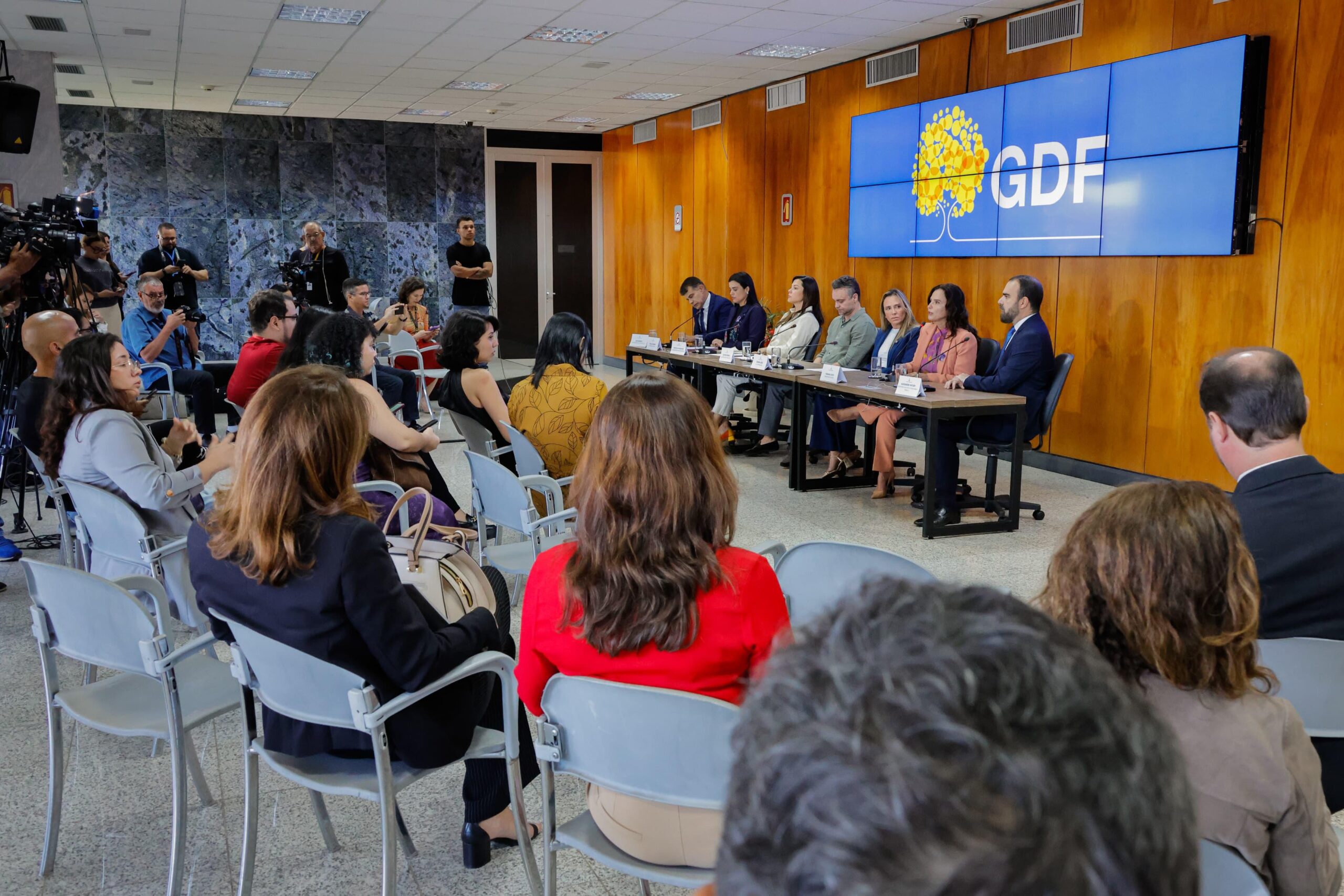 As ações foram criadas a partir de uma reunião entre a vice-governadora, os secretários da Casa Civil, da Mulher, de Justiça e Cidadania e de Segurança Pública, o delegado-chefe da Polícia Civil, integrantes da Controladoria-Geral da PCDF e a presidente da Comissão de Prevenção e Combate ao Feminicídio do Ministério Público do Distrito Federal e dos Territórios (MPDFT). O anúncio foi feito durante coletiva de imprensa no Salão Nobre do Palácio do Buriti e destacado pelo secretário-chefe da Casa Civil, Gustavo Rocha. “Daí a importância do papel da imprensa na cobertura e divulgação das informações, para que a gente possa aumentar a conscientização da população e as denúncias dos casos”, disse.
