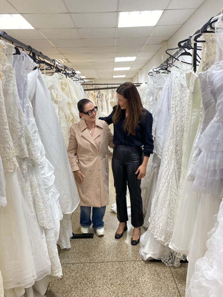 A estilista Maria Virgínia, que tem acompanhado todo o processo do Casamento Comunitário, tem uma reconhecida trajetória com as noivas. Experiente, a estilista tem sensibilidade para lidar com a ansiedade e o desejo das noivas.