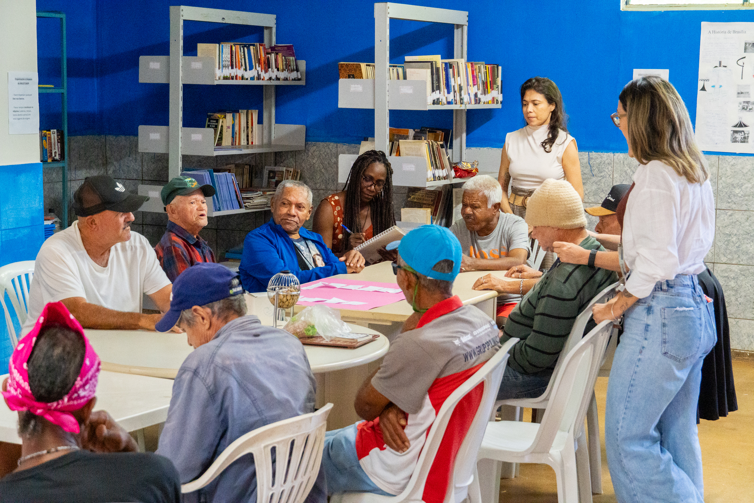 Na visita em Taguatinga, as servidoras da SEEDF acompanharam uma aula sobre hábitos saudáveis e autocuidado físico, mental e intelectual. Foi realizada uma roda de interação entre os estudantes e a professora para tratar das diversas formas de fortalecer a saúde mental e até mesmo conhecer melhor os colegas. O momento foi celebrado com cantoria, além de poemas declamados pelos próprios idosos.
