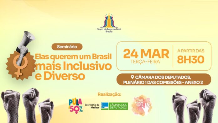 Nesta terça-feira (24), das 8h30 às 12h30, a Câmara dos Deputados sediará a quarta edição do seminário anual promovido pelo Grupo Mulheres do Brasil/Núcleo Brasília, pela Secretaria da Mulher da Câmara e pela associação Elas Pedem Vista. Em alusão ao Dia Internacional da Mulher, o encontro deste ano assume um contorno político mais explícito ao eleger como tema “Elas querem um Brasil mais Inclusivo e Diverso”.